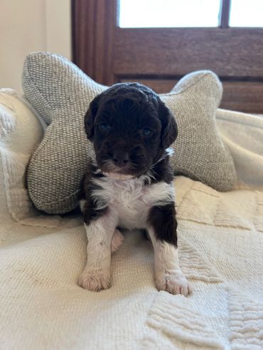 Roxy did an amazing job! We now have six new Aussiedoodle babies looking for their new families! She gave birth to 3 boys and 3 girls. Puppies have all had their dew claws removed and their tails docked and had a great report from the vet. They are all strong and healthy!